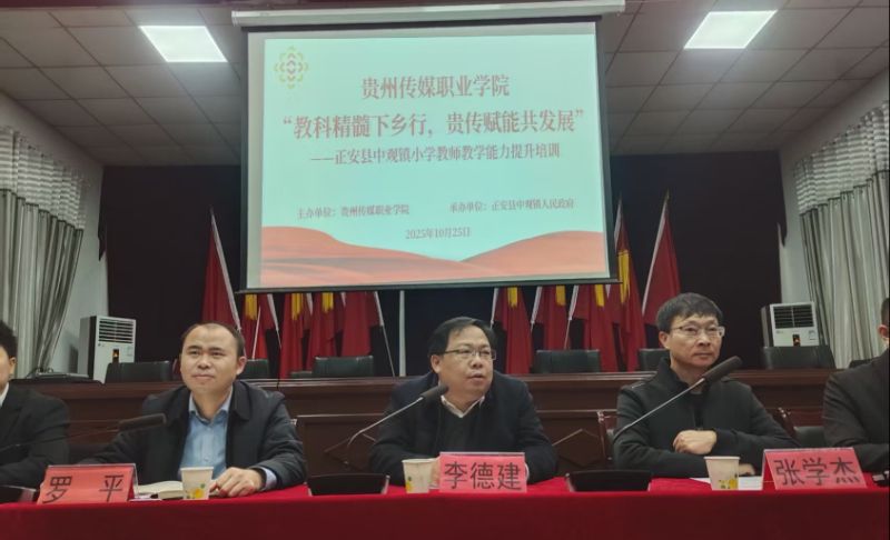 在培训开幕式上,贵州传媒职业学院党委副书记、院长李德建在致辞中强调:“教育是阻断贫困代际传递的根本途径,教师是教育发展的第一资源。”他回顾了前期调研达成的共识,并表示学院将以此次培训为起点,持续深化校地合作。中观镇党委书记罗平代表当地党委政府致欢迎词,格林镇副镇长郑传经代表镇党委、政府致辞,两镇对贵州传媒职业学院表示了衷心的感谢,并强调本次培训是推动本地基础教育高质量发展的关键举措。