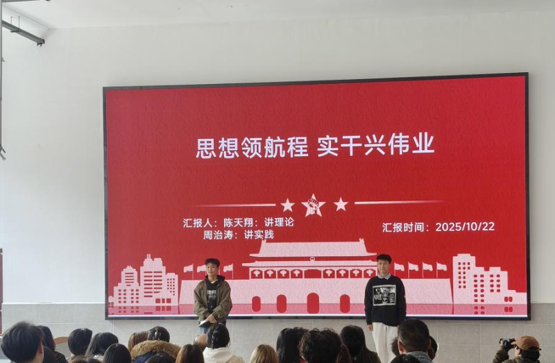 为深入学习贯彻习近平新时代中国特色社会主义思想,推动党的创新理论入脑入心、见行见效,2025年10月22日中午,贵州传媒职业学院经济管理系党总支在北1阶梯教室举办《习近平谈治国理政》第五卷专题学习暨“理论宣传二人讲”活动。经济管理系党总支副书记邓英主持活动,系部18名教师及93名学生代表共同参会。