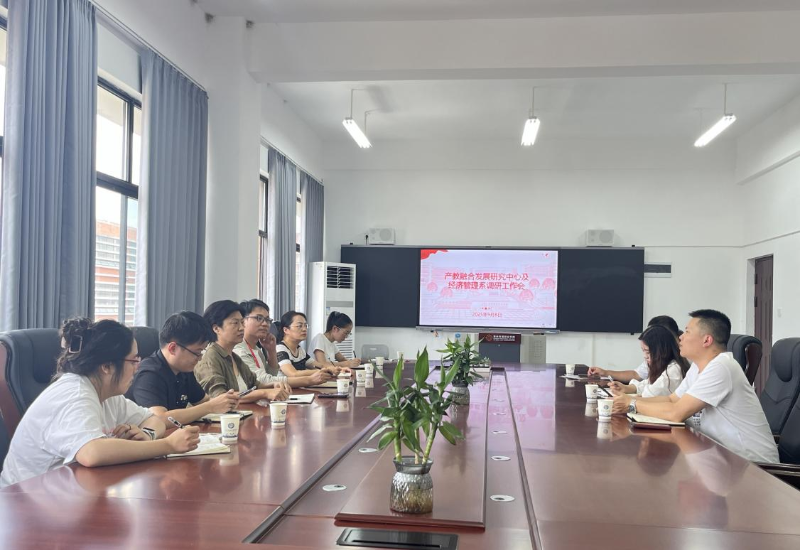 2025年9月8日,产教融合发展研究中心主任童岳嵩教授一行三人莅临经济管理系,围绕产教融合工作开展专题调研。经济管理系党总支副书记邓英、副主任代朝本、副主任李绪红及相关专业教师代表参会。