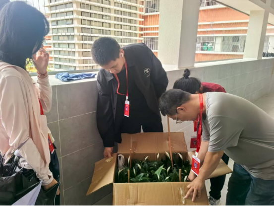 在慰问物资筹备上,系部严格筛选、用心包装。最终选定寓意“一帆风顺”的白鹤芋作为慰问品。该绿植叶片翠绿鲜亮、花型雅致大方,兼具空气净化功能,既符合寝室摆放需求,又完美契合“祝愿新生大学生活顺顺利利”的活动主旨。