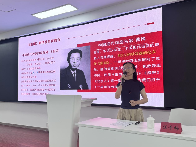 活动现场,汪青梅副教授以其深厚的文学素养与民俗学视角,从伦理学、生物学、政治学、生命哲学等多个维度,为师生们层层剖析了《雷雨》这部经典话剧中的人性挣扎、社会矛盾与命运隐喻。小到人物的情感纠葛,大到时代的阶层困境,都在汪教授的解读中变得立体而深刻,让师生们不仅重新认识了《雷雨》这部作品,更对经典文学与现实生活的关联有了全新思考。