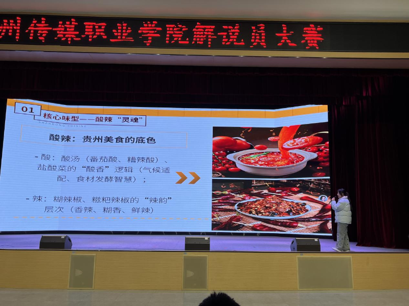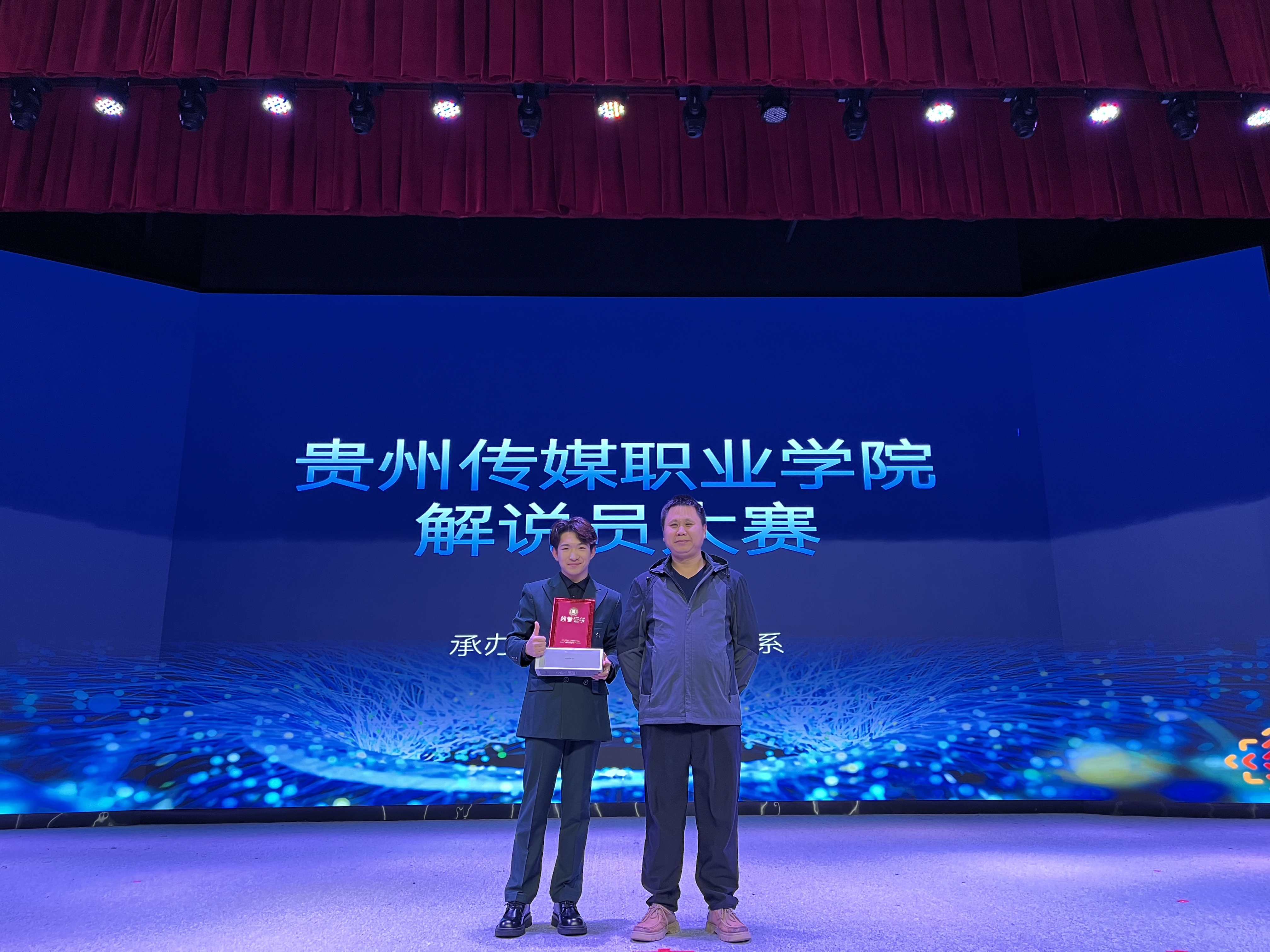 经过主题解说、语言表达及临场应变等多维度综合评比,新闻传播系王泽同学凭借对“安顺地域文化”的深情解读、出色现场掌控力及创意视频剪辑,荣获大赛一等奖。