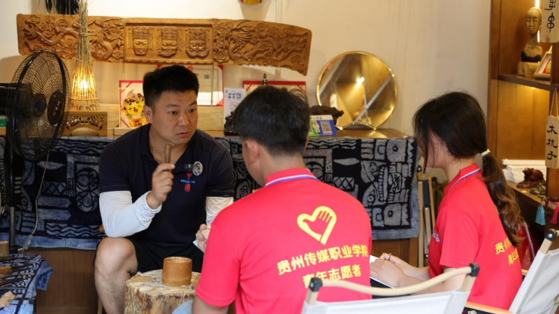 走进“旧州文创”,薪火相传·文化兴村实践队在与安顺市木雕传承人鲍波的交谈中,深刻认识到屯雕文化的精神密码,每一件作品都是文化记忆的物质载体,其传承不仅关乎技艺的存续,更是对地域文化基因的延续。通过此次实践活动,队员们深刻体会到对文化的传承与坚守要不忘初心,既要守护技艺的精髓,更要延续文化的根脉。真正的非遗传承不是简单的技艺复刻,而是对文化精神的薪火相传,正如鲍波老师所说,每一刀雕刻都需要倾注专注与耐心,在精益求精的雕刻中赋予一根根木头灵魂和生命,而那些历经岁月打磨的木雕纹样、地戏面具,承载的不仅是审美价值,更是一个族群的历史记忆。
