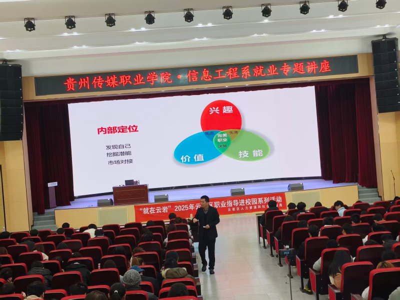 为深入贯彻《《贵州传媒职业学院毕业生就业工作管理规定(试行)》中关于“加强就业指导与服务,提升学生就业竞争力”的要求,帮助学子洞悉就业趋势、提升求职竞争力,11月6日,贵州传媒职业学院信息工程系在播艺楼小剧场成功举办“职业盲盒:打开你的职场新可能”就业专题讲座。