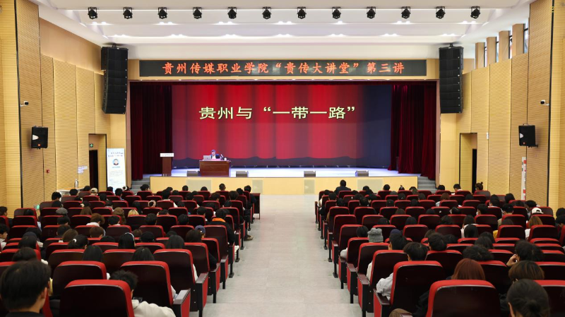 2025年10月21日下午,“贵传大讲堂”第三讲在贵州传媒职业学院小剧场成功举办。学院院长李德建教授担任主持人,特邀贵州省文史研究馆原副馆长、一级巡视员,全国政协委员、省政协常委蒙爱军教授作为主讲嘉宾,为师生们带来了一场主题为“贵州与‘一带一路’”的精彩讲座。