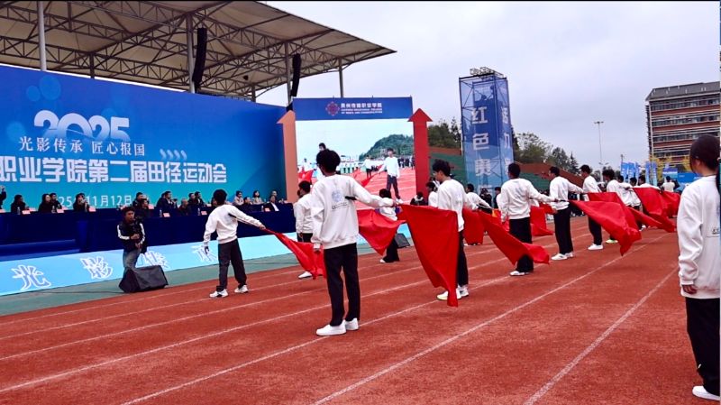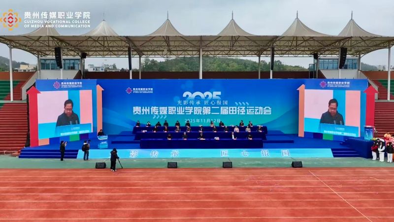 11月12日上午,贵州传媒职业学院田径场绿茵铺锦绣,旌旗猎长空。彩旗翻飞间,青春与艺术随风起舞;乐声悠扬处,运动与文明在光影中交融。“光影传承·匠心报国”职业素养与技能提升活动月暨第二届大学生运动会正式开幕。学院党委书记蒋刘恩、院长李德建等党政领导班子成员,特邀嘉宾及全院师生齐聚赛场,共赴一场体育精神与传媒艺术相融、职业素养与办学理念共生的盛会。当晨曦洒满跑道,这场关于“光影”与“匠心”的深度交流,既延续着人类对力量与超越的永恒向往,更彰显着新时代传媒职业教育“五育并举”的育人智慧与文化自觉。