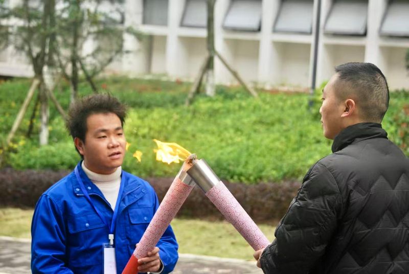 火炬传递仪式成为全场焦点。火炬从校门出发,途经授艺楼、图书馆、篮球场、全媒体综合中心等校园地标,由保卫、宿管、食堂工作人员代表,以及教师、辅导员、学生代表依次接力。传递过程中,接力间隙的自然问候、默契配合,文明素养内化于心、外化于行。这束火炬既串联起“平安贵传”的守护力量,更传承着体育精神中的团结与尊重,“弯腰精神”在薪火相传中更加深入人心,也让做“有礼貌、有素养”的时代青年要求在接力中悄然扎根。
