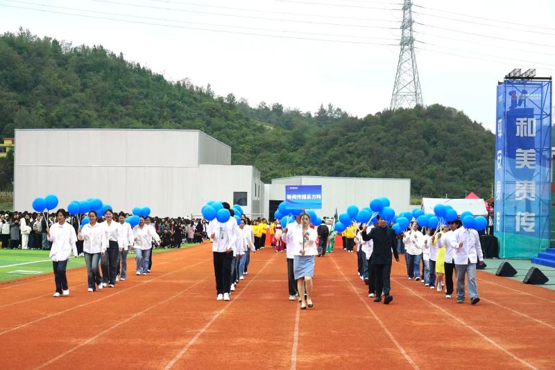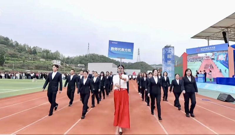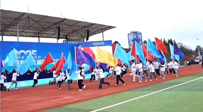 主席台两侧,红色贵传、活力贵传、数智贵传、技能贵传、平安贵传、和美贵传等“六个贵传”的标语醒目昂扬,为盛会奠定奋进基调。开幕式在激昂的《运动员进行曲》中有序推进:国旗护卫队步伐坚定、精神抖擞,彰显着贵传人的家国情怀;校徽方阵手持道具,具象化“立德树人”的办学初心;办学思想方阵以醒目标识,诠释“弘道崇德、知行尚能”的校训真谛。