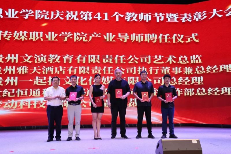 为深化产教融合、推动校企协同育人机制创新,学院聘请贵州文演教育有限责任公司一级演员常晖、贵州雅天酒店有限责任公司执行董事兼总经理肖梅、贵州一起拍文化传媒有限公司总经理何富军、世纪恒通科技股份有限公司校企合作部总经理付秋实、贵州盛华职业学院讲师/梦动科技副总经理赵永红五位资深行业专家担任产业导师。院长李德建现场为他们颁发聘书。此举旨在共同打造以“项目驱动教学、市场检验成果、产业反哺科研”为内核的传媒教育创新生态,标志着学院从“输送人才”到“共同孵化未来传媒领军者”的深层次转变。