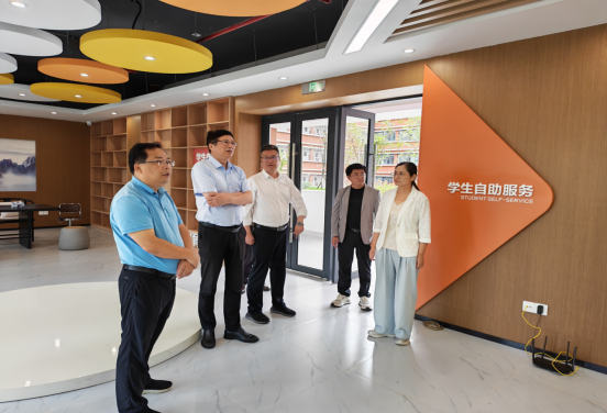 考察组深入人工智能学院、学生一站式服务中心等教学实践场所,全面调研我院育人创新成果。在人工智能学院,范卫东书记一行重点观摩了“数据标注”实训中心,听取了相关负责人关于实训体系的汇报,对学院构建“技术筑基-艺术赋能”的标注课程体系表示认可,认为该规划契合数据标注产业向知识密集型转型的趋势;在学生一站式服务中心,详细了解了学院“学业指导—创新创业—生涯规划”全链条服务体系,高度赞赏“以生为本”的服务理念与高效运行机制。