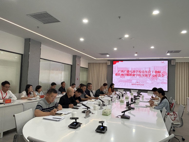2025年10月11日,广西广播电视学校三位青年骨干教师赴贵州传媒职业学院交流学习的座谈会在学院图书馆T225会议室顺利召开。此次座谈会标志着两校为期三个月的广播影视节目制作专业联合培养项目正式启动,双方围绕如何高质量达成培训目标展开了深入务实的交流。