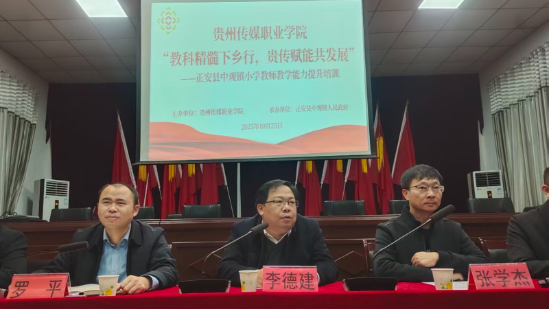 在培训开幕式上,贵州传媒职业学院党委副书记、院长李德建在致辞中强调:“教育是阻断贫困代际传递的根本途径,教师是教育发展的第一资源。”他回顾了前期调研的共识,并表示学院将以此次培训为起点,持续深化校地合作。中观镇党委书记罗平代表当地党委政府致欢迎词,格林镇副镇长郑传经代表镇党委、政府致辞,两镇对贵州传媒职业学院表示了衷心的感谢,并强调本次培训是推动本地基础教育高质量发展的关键举措。