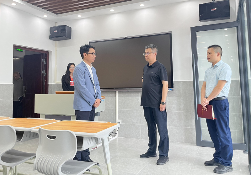 座谈结束后,蒋刘恩书记一行实地走访了经济管理系办公区、教学区及直播实训基地,细致查看了办公设施配置、资源维护管理及日常使用情况,并就办公室、教学区走廊和实训室的文化建设提出了指导性意见。