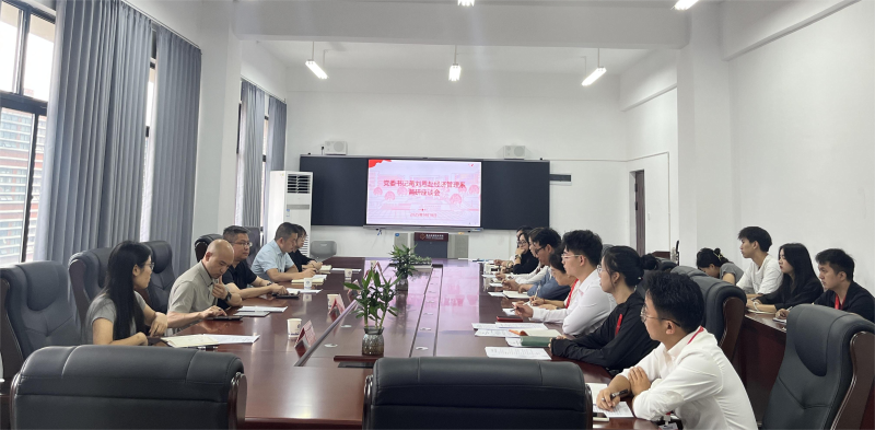 9月18日上午,围绕“凝心聚力,提质增效,推动经济管理系高质量发展”主题,学院党委书记蒋刘恩一行赴经济管理系开展调研指导。经济管理系副主任李绪红、张雪蕾,以及教师代表、辅导员代表和学生代表等共19人参加本次座谈。会议由经济管理系副主任代朝本主持。