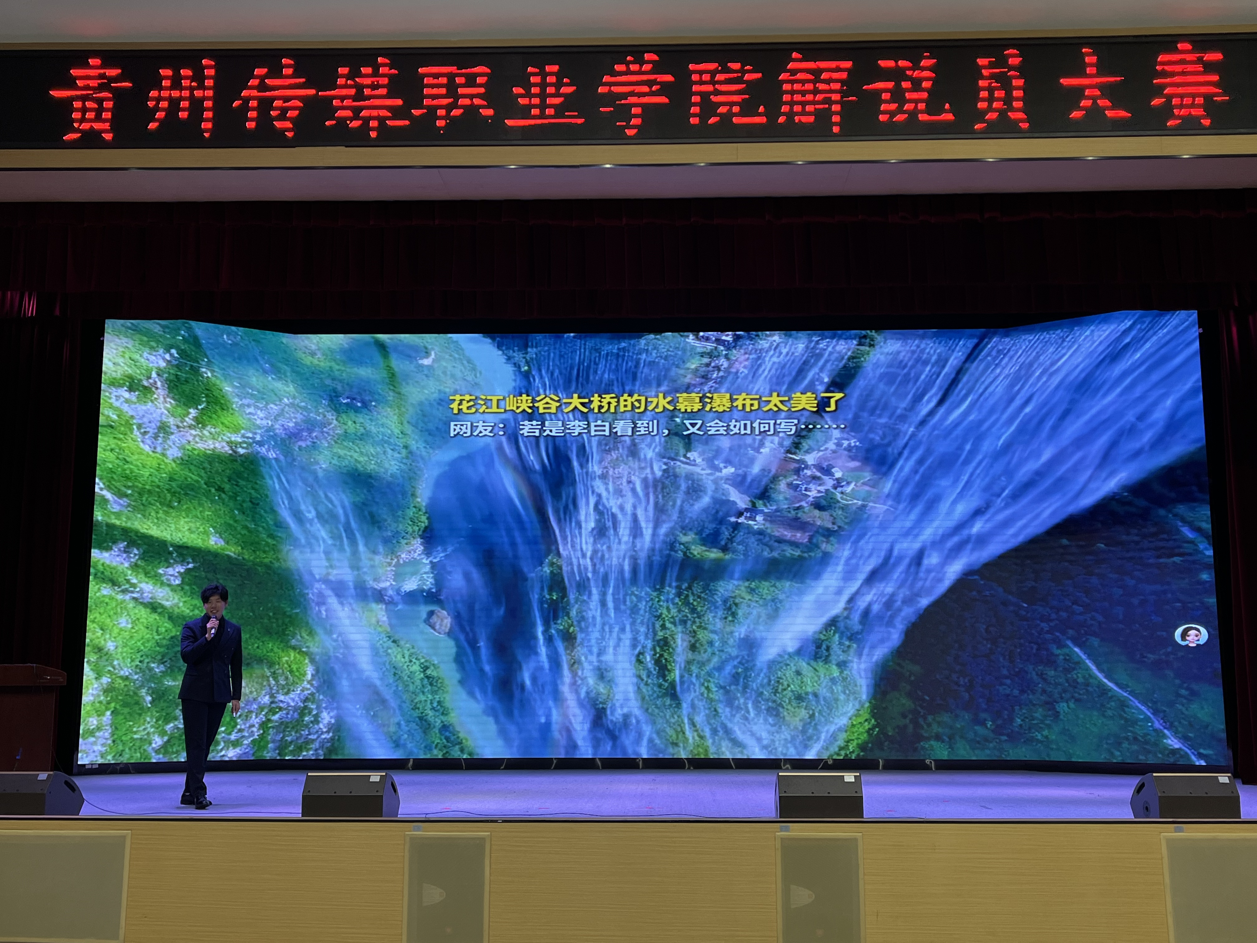 经过主题解说、语言表达及临场应变等多维度综合评比,新闻传播系王泽同学凭借对“安顺地域文化”的深情解读、出色现场掌控力及创意视频剪辑,荣获大赛一等奖。