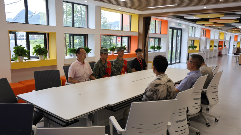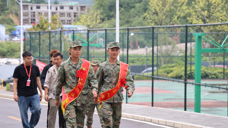 9月12日中午,信息工程系辅导员前往清镇市役前训练基地,将韩俊杰接回学校。为表彰和鼓励贵传入伍学子的爱国情怀与报国之志,学院特别为其举办了隆重的送兵仪式。学院党委书记蒋刘恩、学工部部长陈亮出席了慰问座谈,对入伍学子表示热烈祝贺,并寄予厚望。