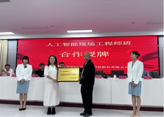随后,周宏副院长与世纪恒通科技股份有限公司校企合作部副总经理尹慧容互相授牌,“人工智能现场工程师人才培养基地”正式落地我校,标志着双方从“合作办学”向“协同育人”的深度迈进。
