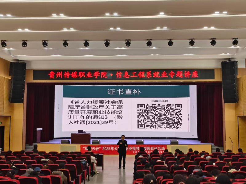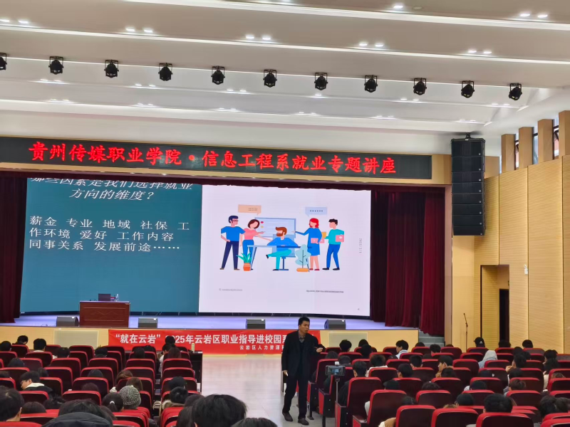为深入贯彻《《贵州传媒职业学院毕业生就业工作管理规定(试行)》中关于“加强就业指导与服务,提升学生就业竞争力”的要求,帮助学子洞悉就业趋势、提升求职竞争力,11月6日,贵州传媒职业学院信息工程系在播艺楼小剧场成功举办“职业盲盒:打开你的职场新可能”就业专题讲座。