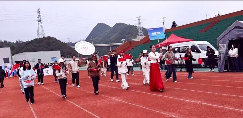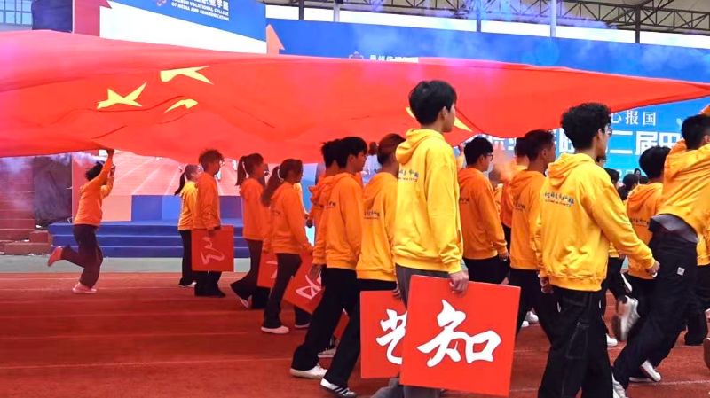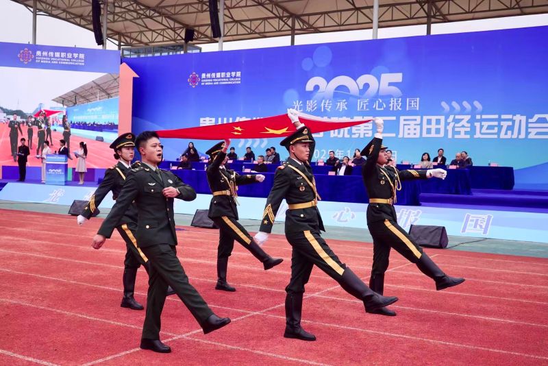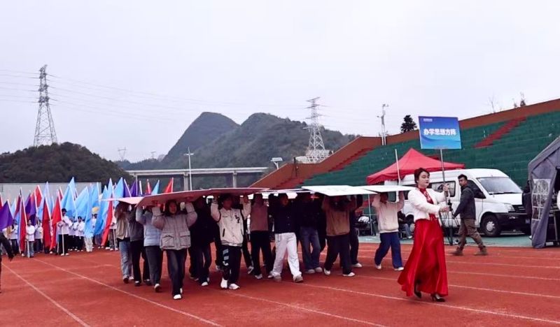 主席台两侧,红色贵传、活力贵传、数智贵传、技能贵传、平安贵传、和美贵传等“六个贵传”的标语醒目昂扬,为盛会奠定奋进基调。开幕式在激昂的《运动员进行曲》中有序推进:国旗护卫队步伐坚定、精神抖擞,彰显着贵传人的家国情怀;校徽方阵手持道具,具象化“立德树人”的办学初心;办学思想方阵以醒目标识,诠释“弘道崇德、知行尚能”的校训真谛。