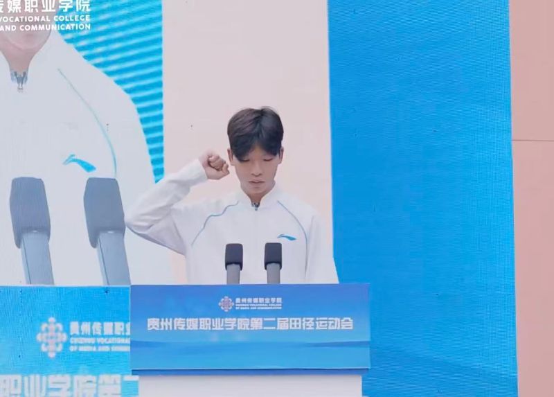 他寄语全体师生,以赛会友,让“礼貌运动”“弯腰精神”融入赛场细节,主动拾捡杂物、恪守礼仪,彰显“和美贵传”底蕴;以赛砺志,在拼搏中践行校训校风,借活动月契机勤练技能、提升竞争力,让体育精神与职业素养双向赋能。随后,运动员代表与裁判员代表先后庄严宣誓,承诺恪守公平竞赛原则,以文明言行诠释“礼貌运动”真谛,以诚信品格践行“守正创新”学风,在赛场上赛出风格、赛出水平。