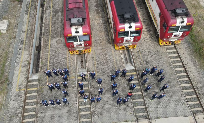 8月19日,在肯尼亚内罗毕非洲之星铁路运营有限责任公司机务运转整备场,中肯两国铁路工作者在机车前站列并组成“3000”字样,以纪念蒙内铁路实现安全运营3000天